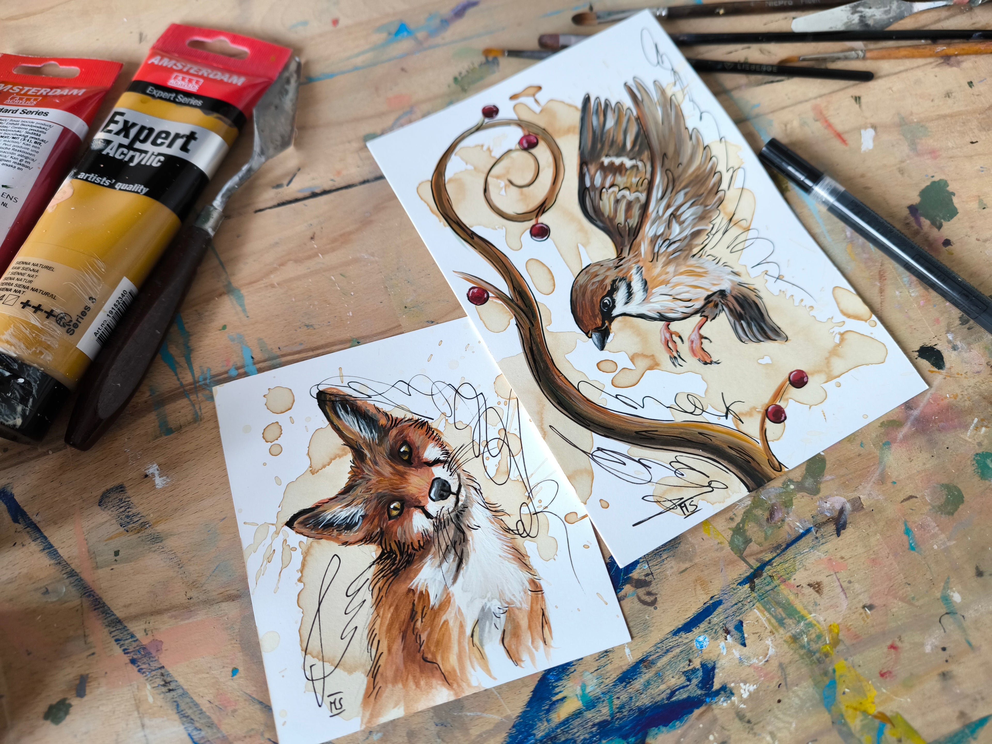 Du liebst Tierportraits, kreative Ideen mit Kaffee und möchtest ein Blick in meine Atelierarbeit werfen?