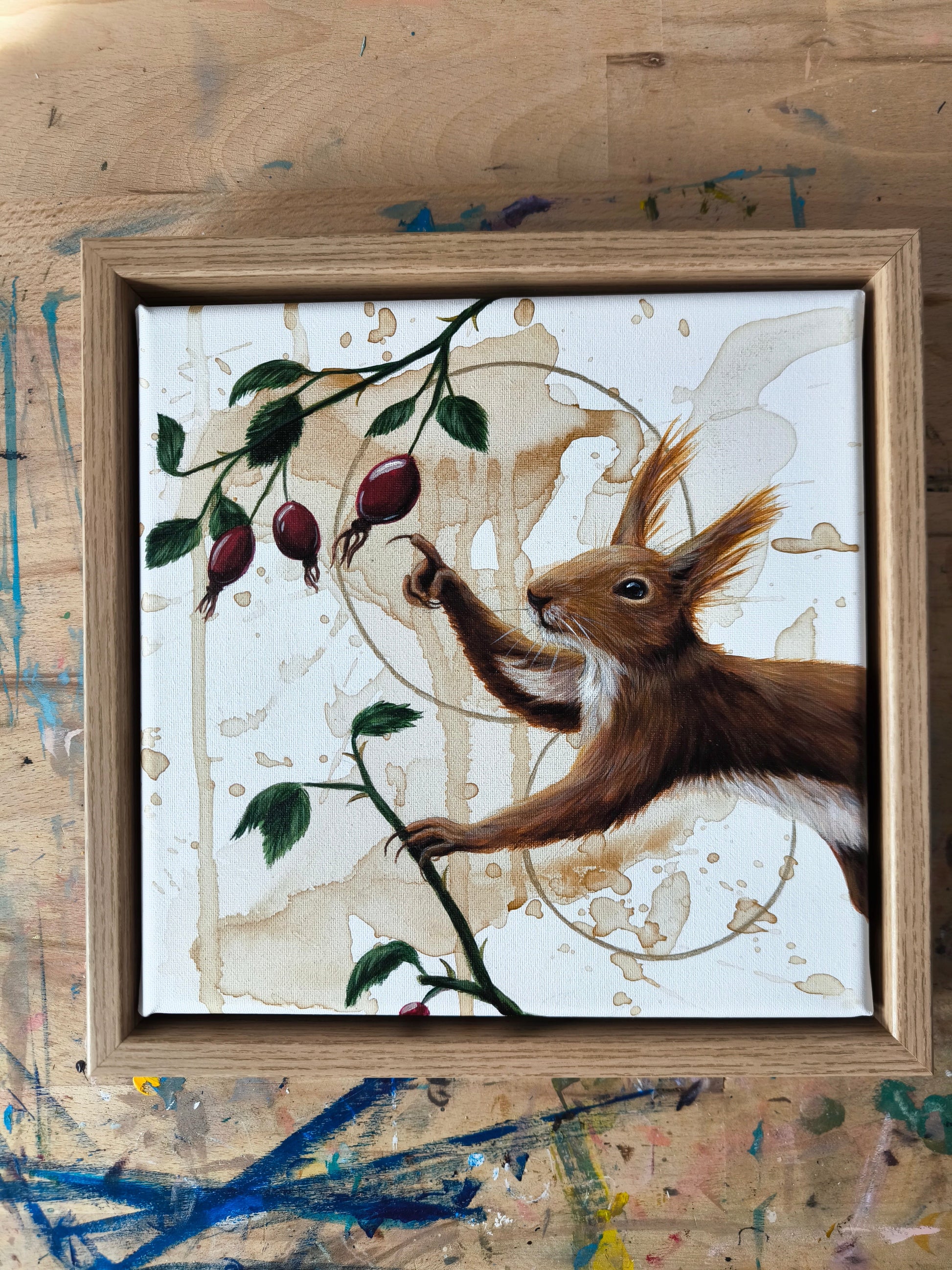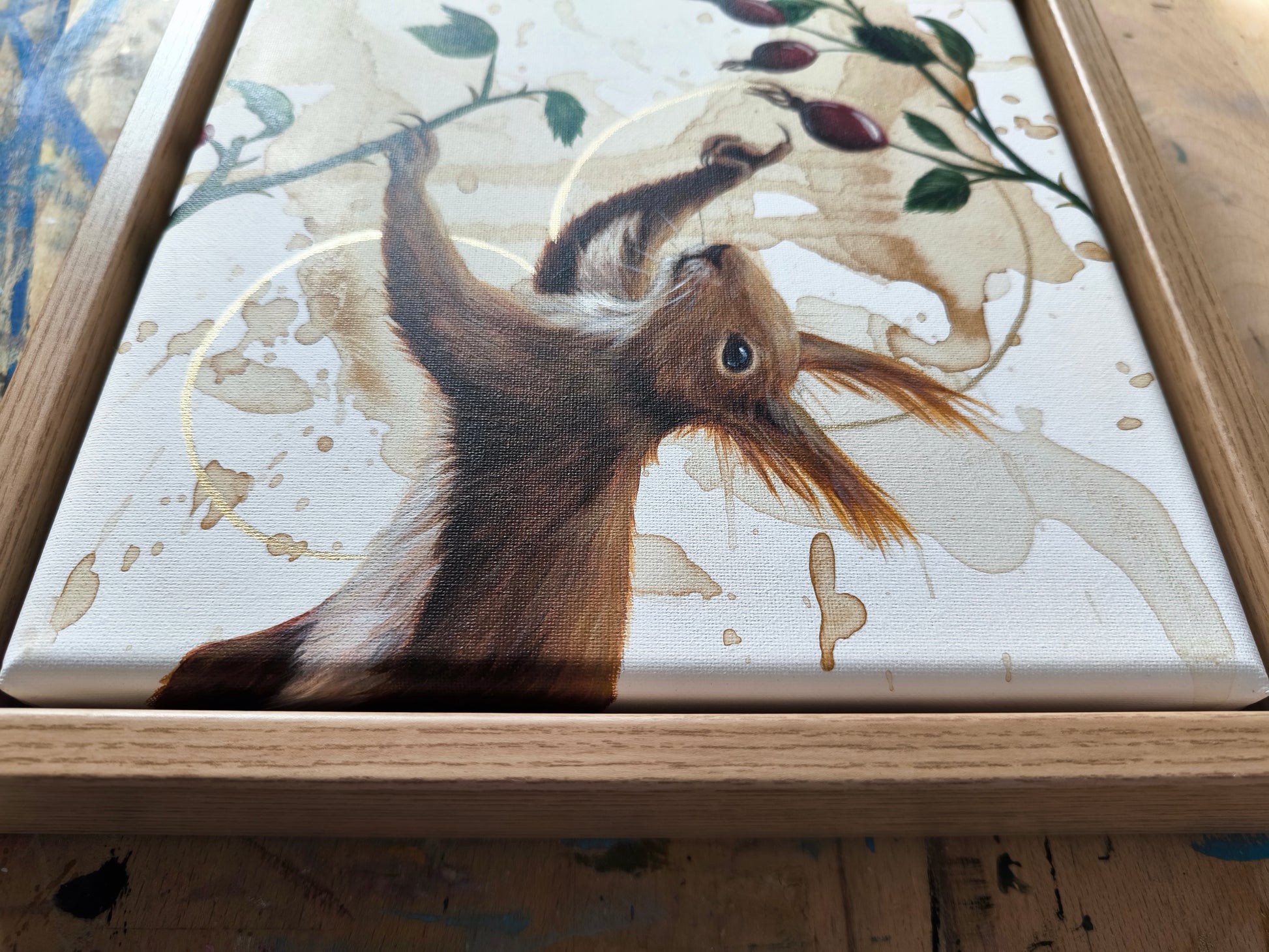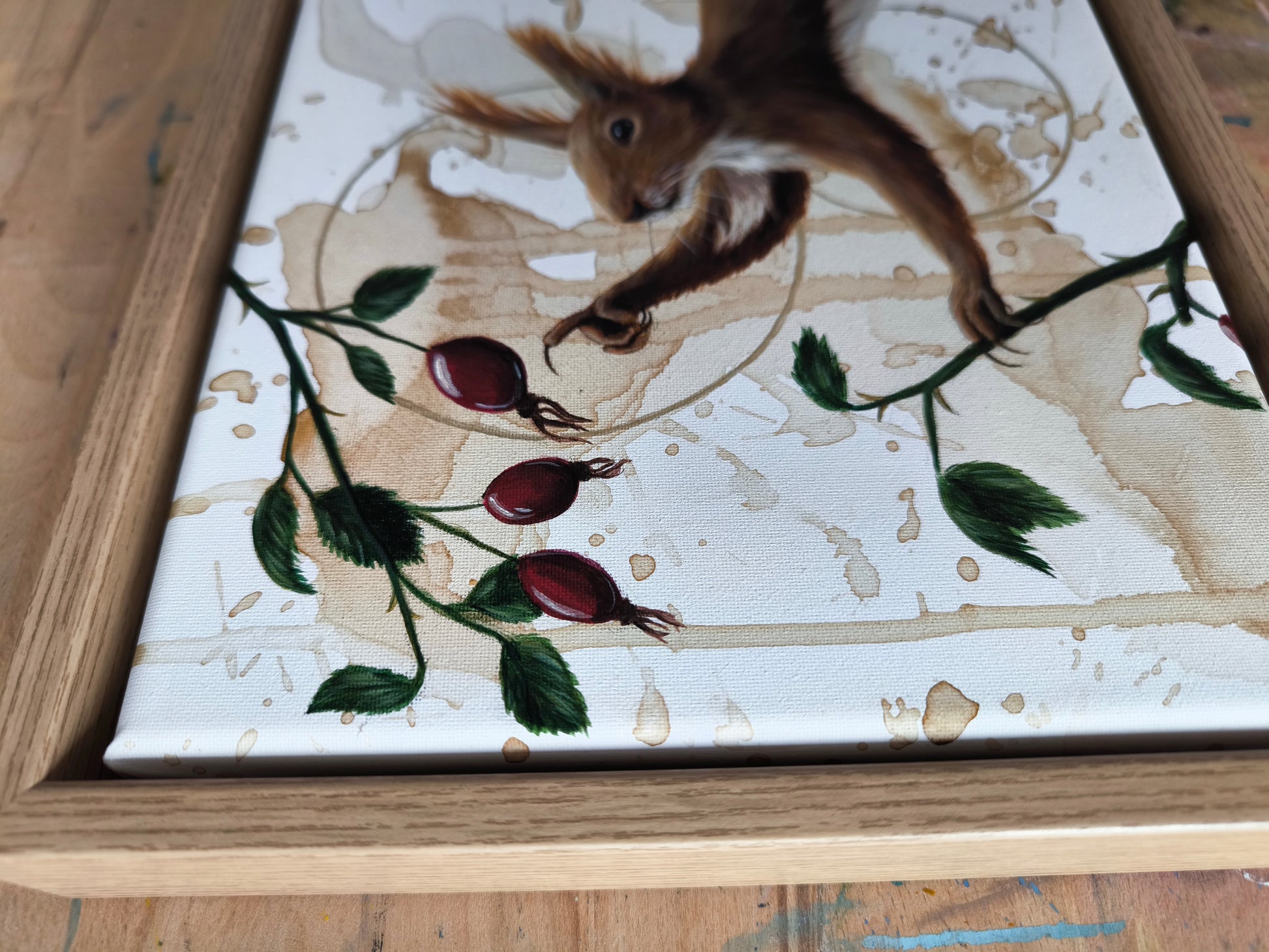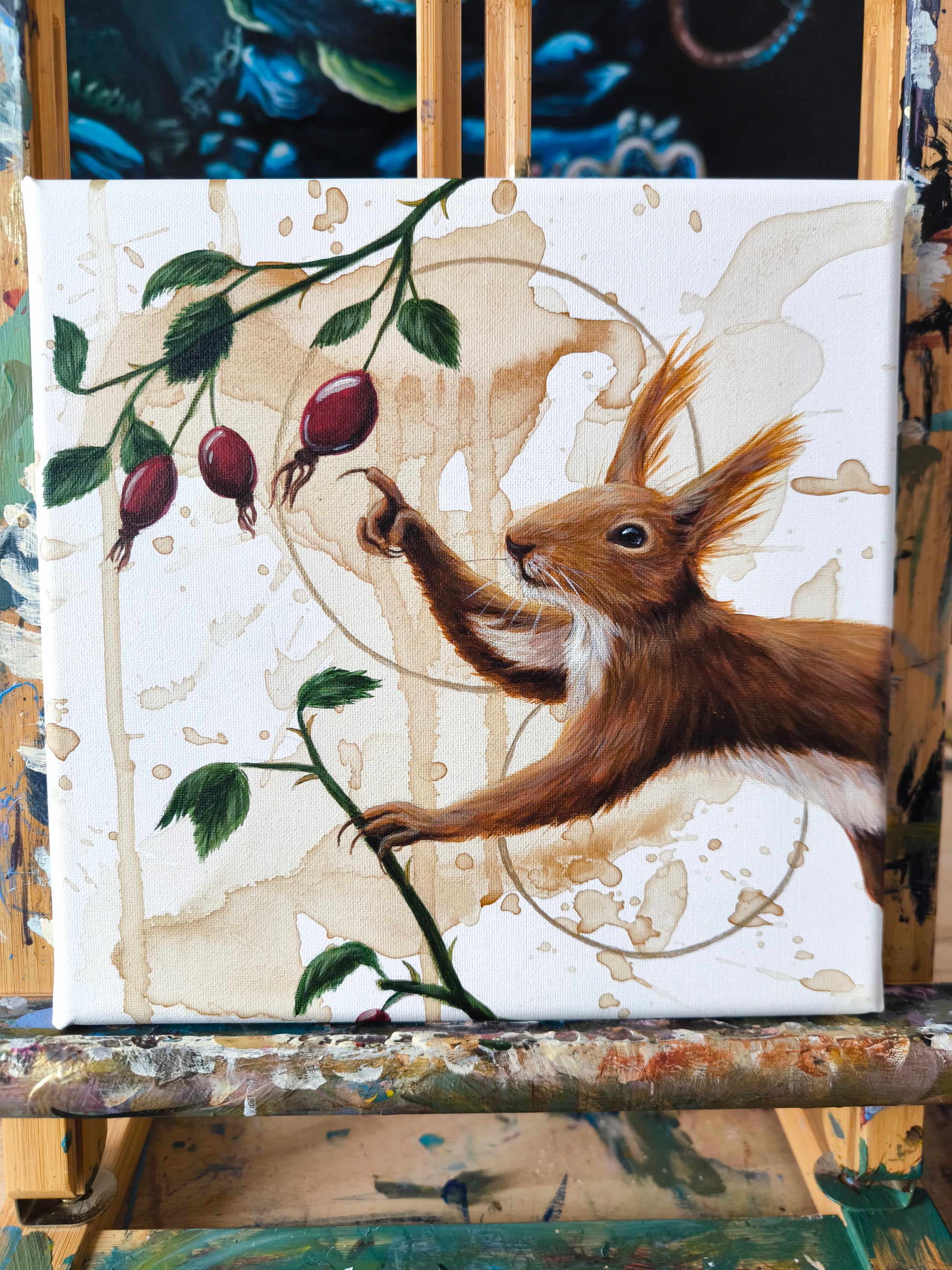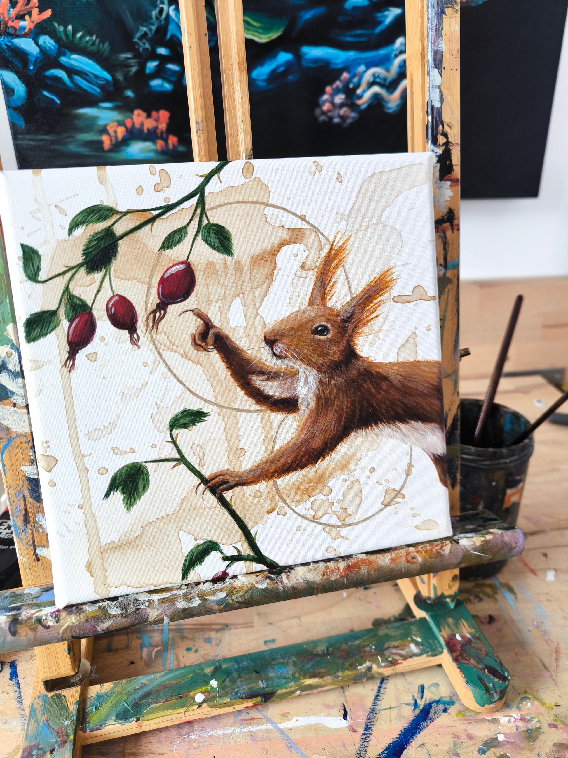 Das Kunstwerk ist eines aus meiner neuen Serie von 6 Kaffee Malereien, wo verschiedene Tiere nicht nur mit Erdigen Kaffee in Verbindung stehen, sondern auch den kühlen Metallpigmenten.