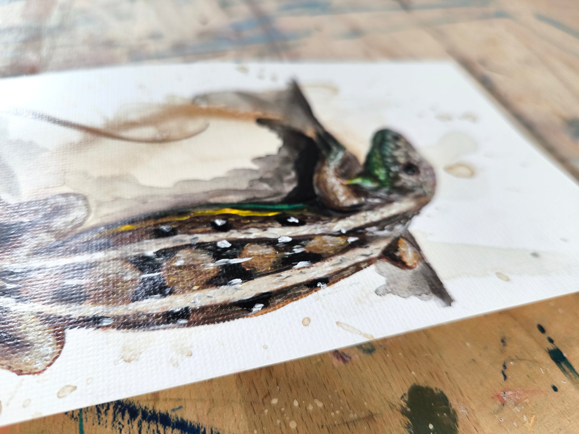 Bitte beachten sie eine derzeit längere Versandzeit. Da die Malerei eine Trocknungszeit bis zum 14.11.2025 hat und erst danach versendet werden kann.