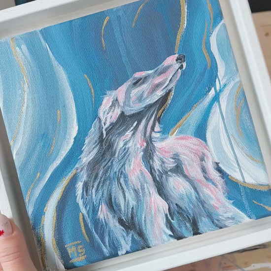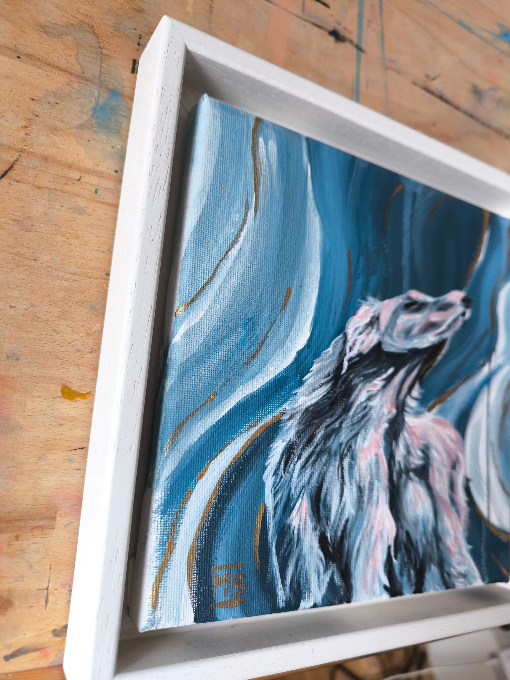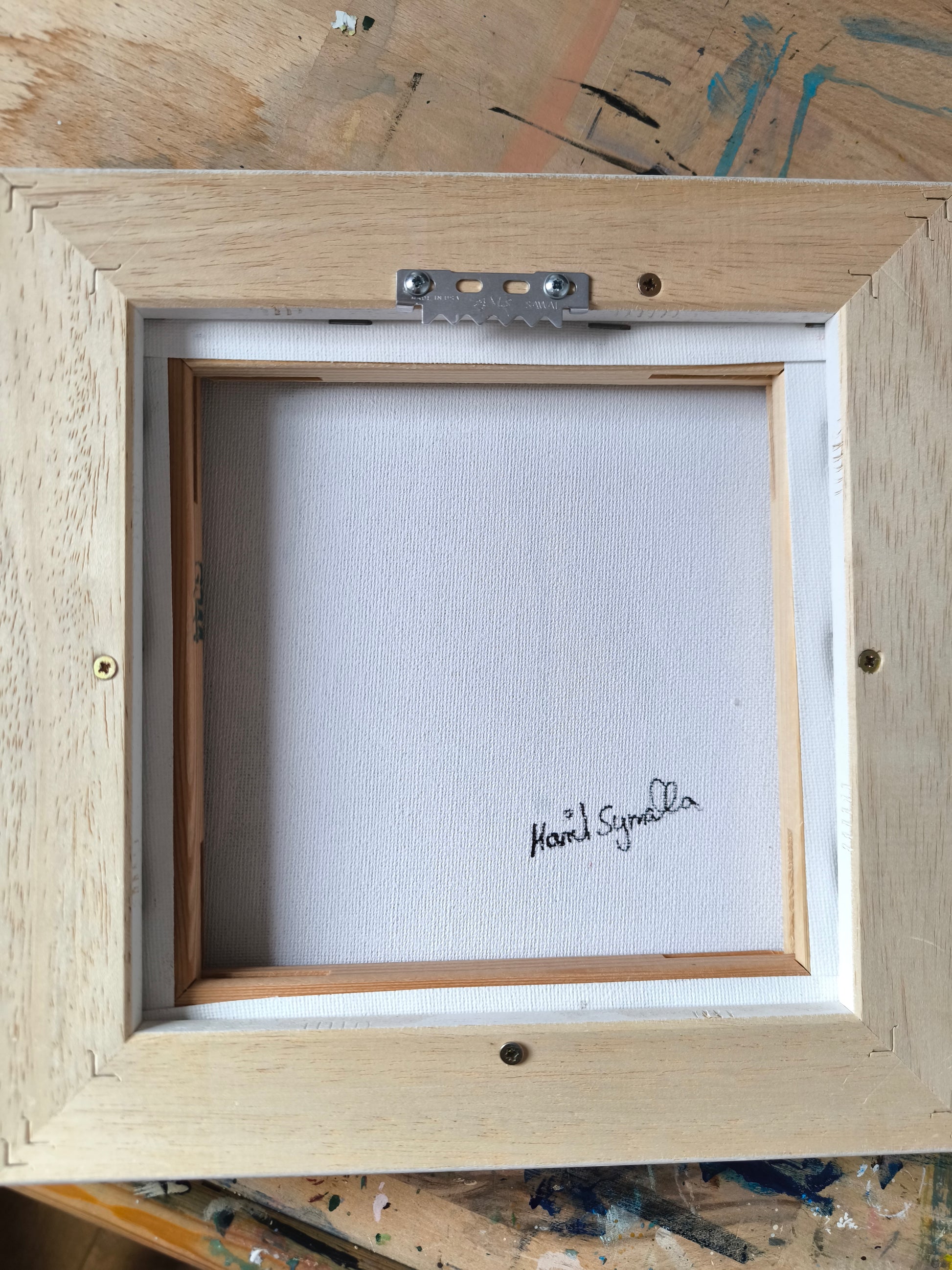 Das kleine Acrylgemälde ist 2018 gemalt und handsigniert und mit einem stilvollen Schattenfugenrahmen versehen.