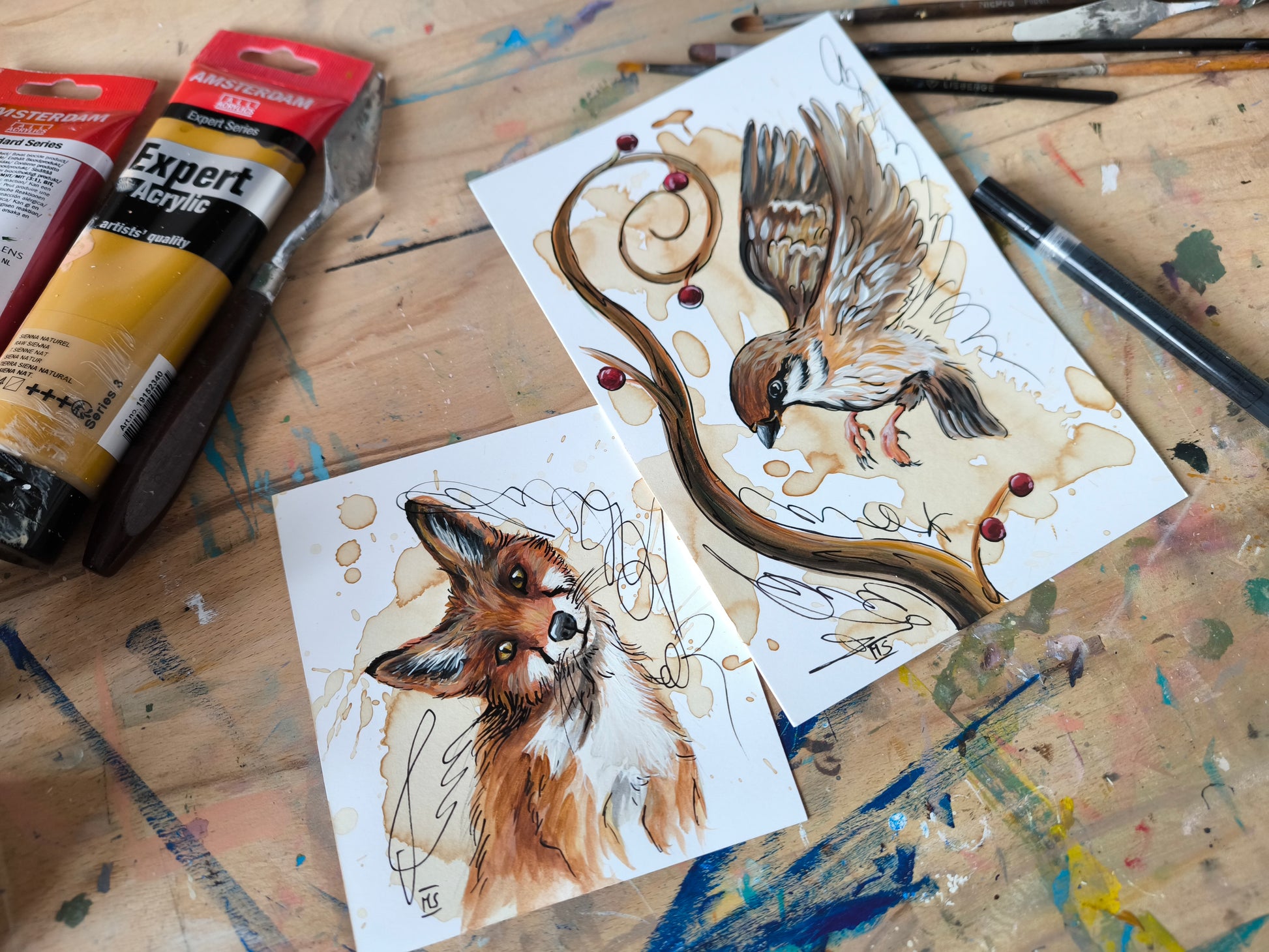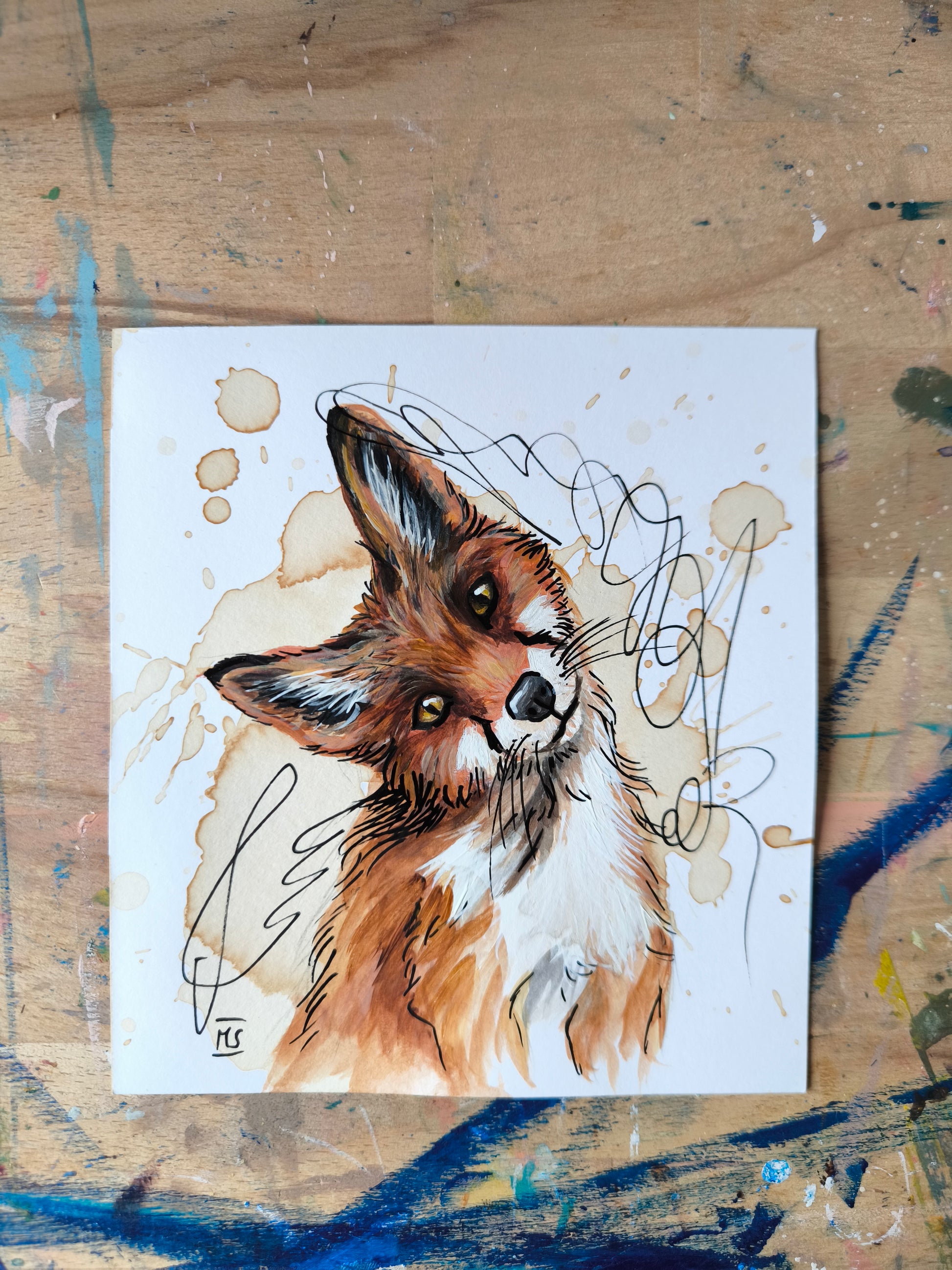 Mit warmen Kaffeetönen und sanften Acrylfarben erwacht der kleine neugierige Fuchs zum Leben. Die kleine Kaffeemalerei erinnert daran, das Leben mit einem Lächeln zu betrachten und den Zauber gerade im Alltäglichen zu finden.
