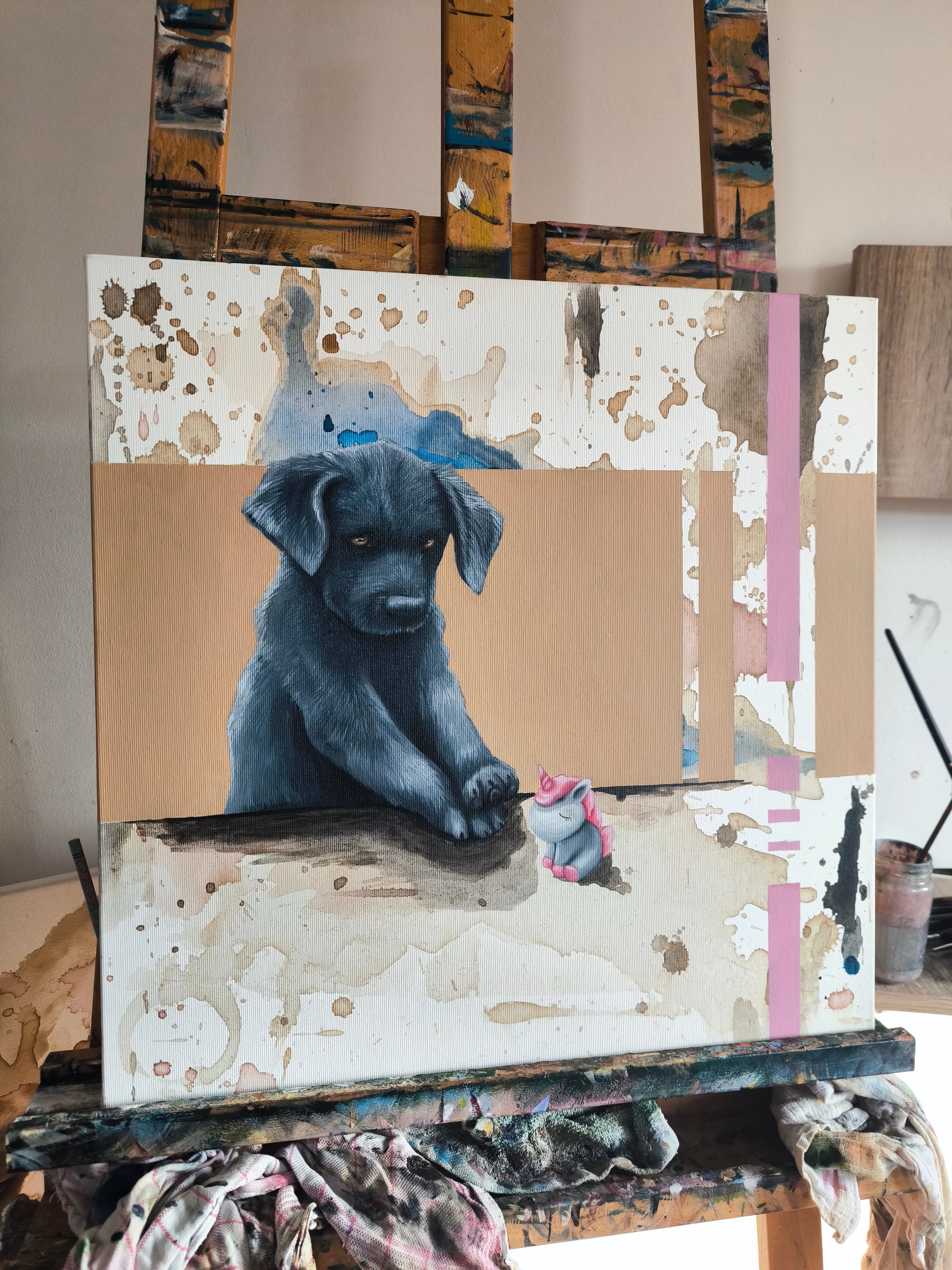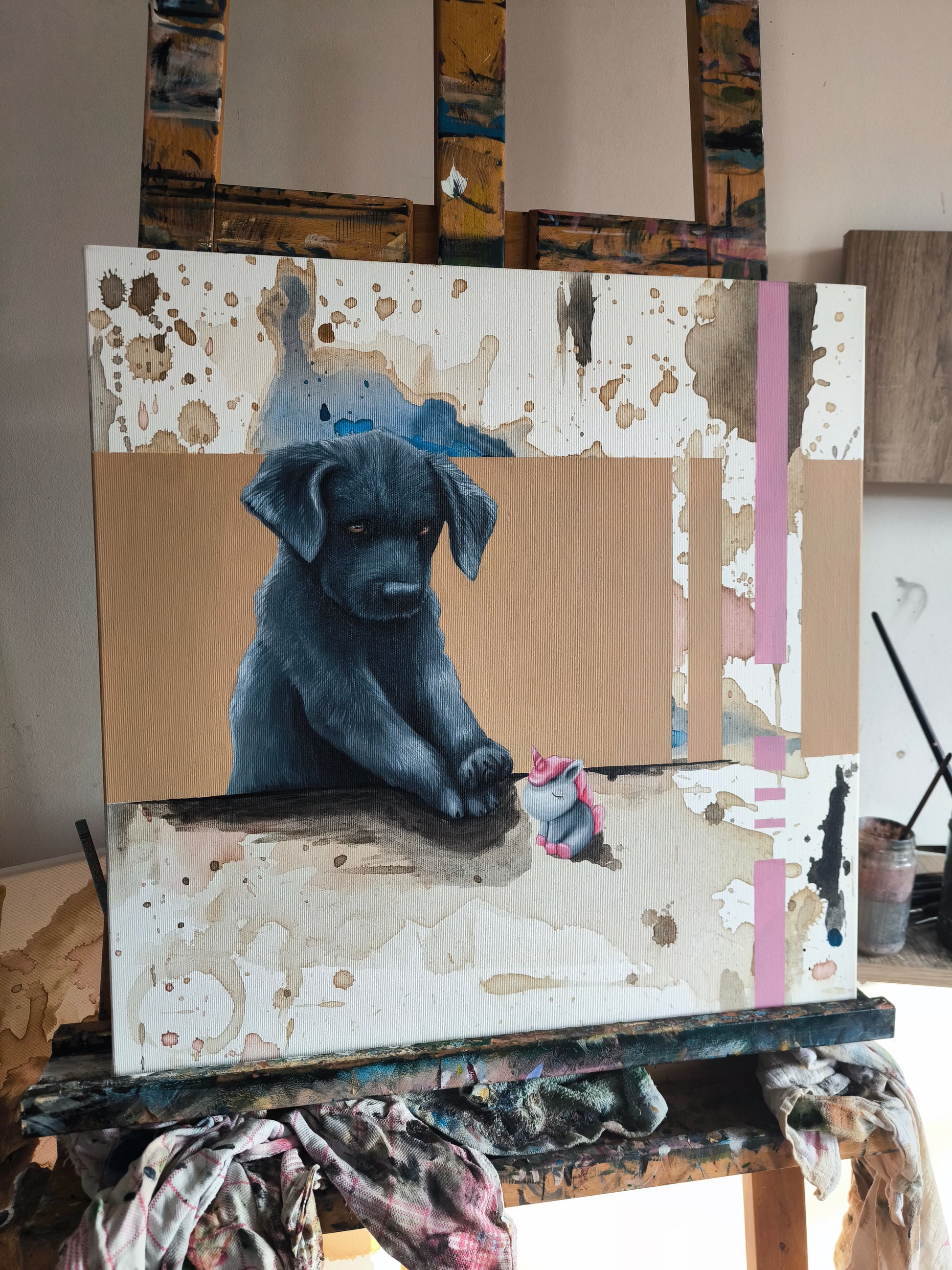 Ölfarben und Kaffee